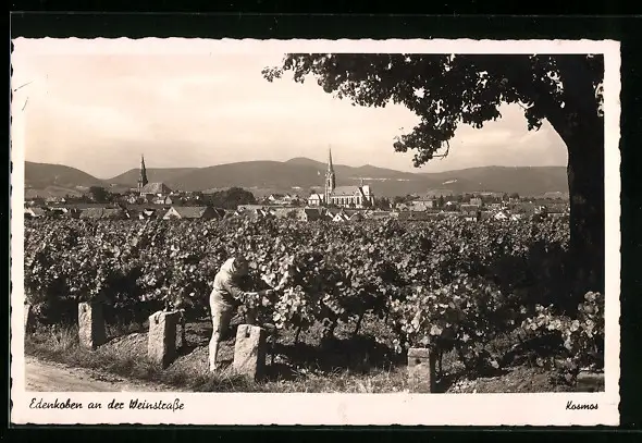 AK Edenkoben an der Weinstrasse, Weinberg mit Ortskulisse