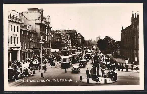 AK Edingburgh, West End, Princess Street, Strassenbahn