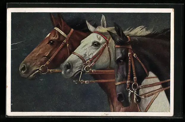 AK Edle Pferde mit Zaumzeug