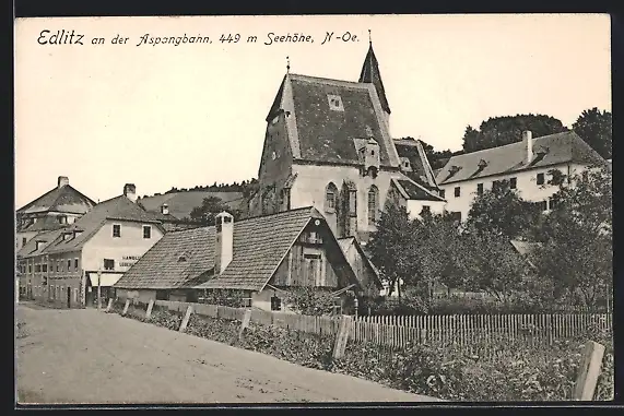 AK Edlitz an der Aspangbahn, Ortspartie mit Handlung