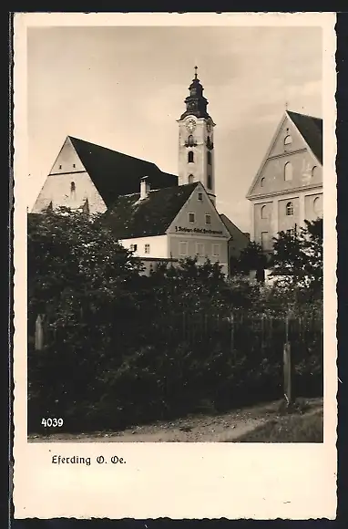 AK Eferding, Ortsansicht mit Gasthof und Kirche