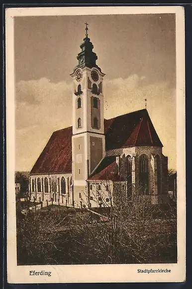 AK Eferding, Stadtpfarrkirche im Abendlicht