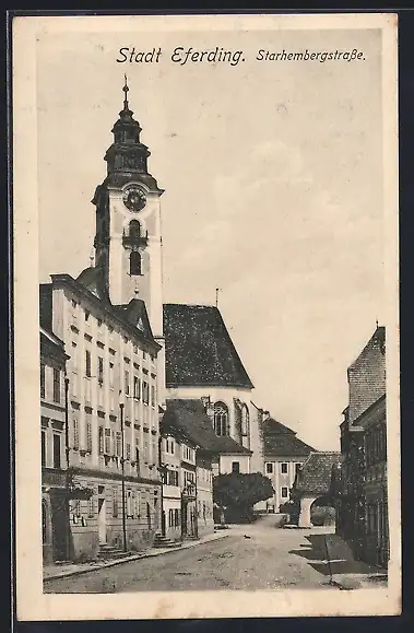 AK Eferding, Starhembergstrasse mit der Kirche