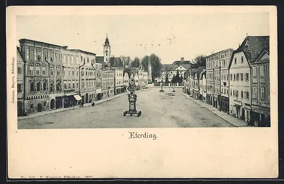 AK Eferding, Strassenpartie mit Geschäften und Denkmal