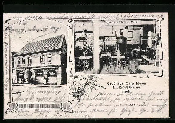 AK Egeln, Cafe Meyer von Rudolf Meyer, Innenansicht