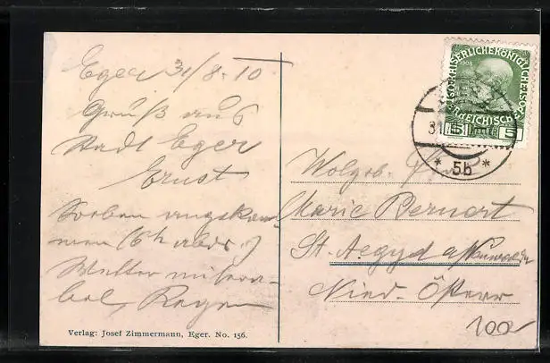 alte Ansichtskarte, gelaufen 1910, guter Zustand
