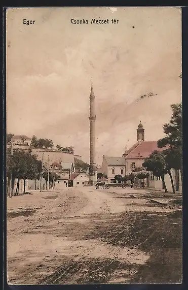 AK Eger, Csonka Mecset ter, Platzansicht mit Minarett