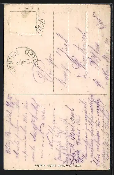 alte Ansichtskarte, gelaufen 1915, Briefmarke entfernt, rückseitig Oberflächenschaden, Eckknick li. oben, Abriebspur oben mittig, guter Zustand