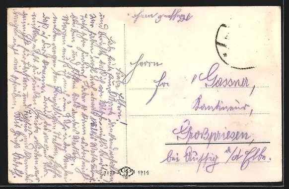 alte Ansichtskarte, gelaufen, Briefmarke entfernt, guter Zustand