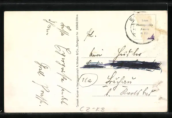 alte Ansichtskarte, gelaufen, Briefmarke entfernt, guter Zustand