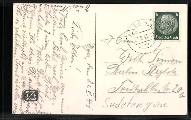 alte Ansichtskarte, gelaufen 1941, guter Zustand