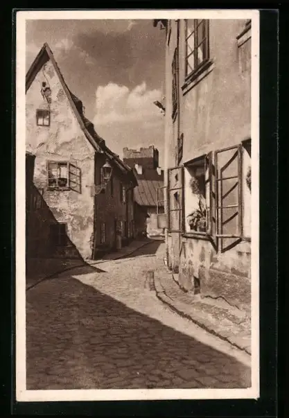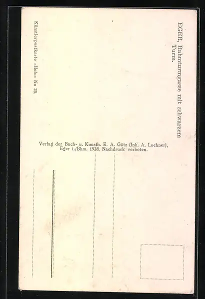 AK Eger, Rahmturmgasse mit schwarzem Turm