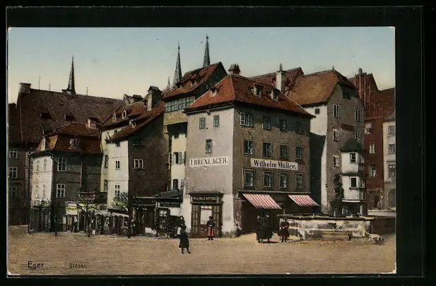 AK Eger, Stöckl mit Uhrenlager Wilhelm Müller