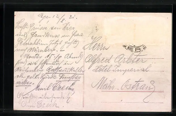 alte Ansichtskarte, gelaufen 1921, Briefmarke entfernt, guter Zustand