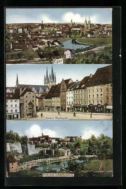 AK Eger, Unterer Marktplatz, Blick vom Schustersprung