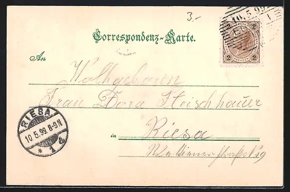 alte Ansichtskarte, gelaufen 1899, guter Zustand