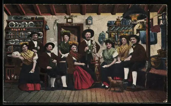 AK Egerländer in der Hutzastube, Tracht Sudeten