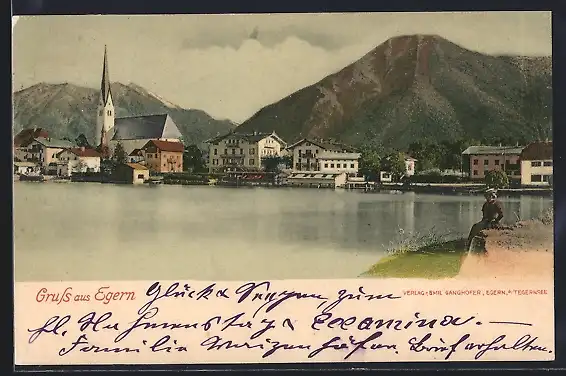 AK Egern, Ortspartie am Seeufer
