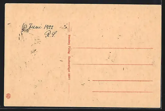ungelaufen, Rückseite beschrieben 1922, guter Zustand