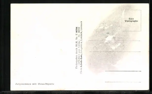Personenbezogene Daten auf der Rückseite der Karte wurden durch blauen Textmarker unkenntlich gemacht. Die blauen Stellen sind auf die Vorderseite durchgeweicht und wirken sich negativ auf das Postkartenfoto aus