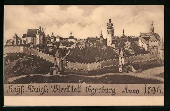 AK Eggenburg, Ortsansicht mit Kirche 1746