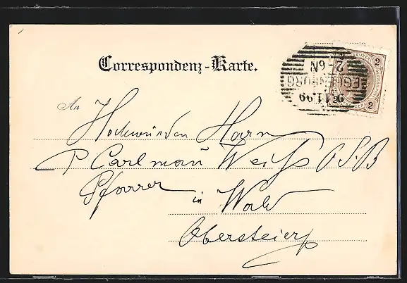 alte Ansichtskarte, gelaufen 1899, guter Zustand