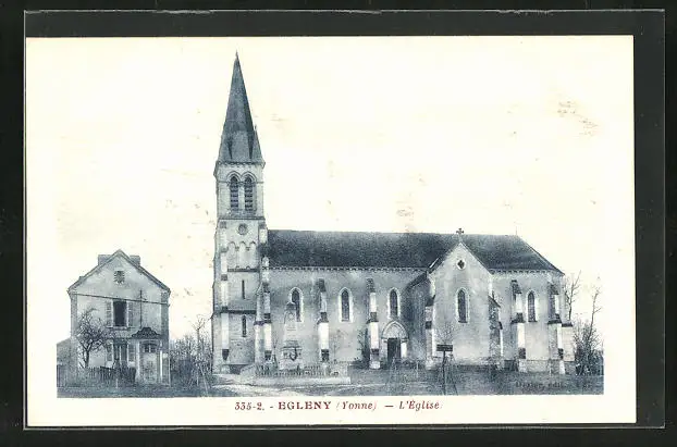 AK Egleny, L`Eglise, Ehrenmal an der Kirche