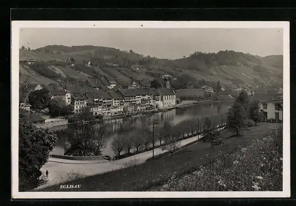 AK Eglisau, Flusspartie mit Blick auf den Ort