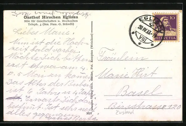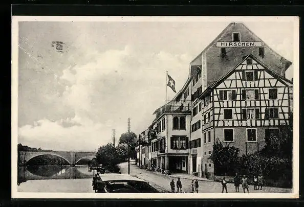 alte Ansichtskarte, gelaufen 1933, mehrere Bugspuren mittig, guter Zustand