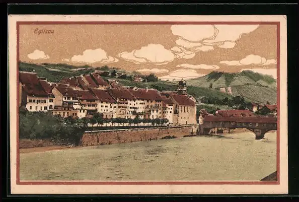 AK Eglisau, Teilansicht mit Brücke über den Rhein
