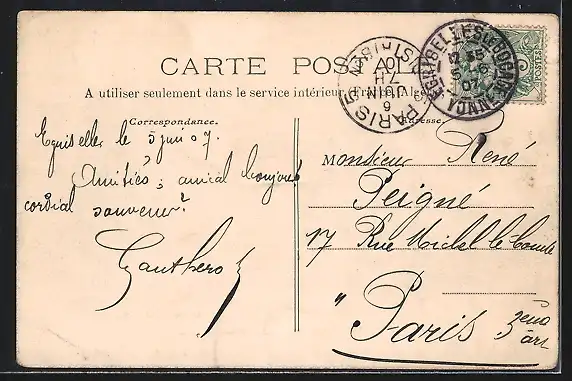 gelaufen 1907, Eckknicke unten re. und oben li., guter Zustand