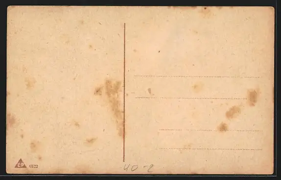 Personenbezogene Daten auf der Rückseite der Karte wurden durch blauen Textmarker unkenntlich gemacht. Die blauen Stellen sind auf die Vorderseite durchgeweicht und wirken sich negativ auf das Postkartenfoto aus