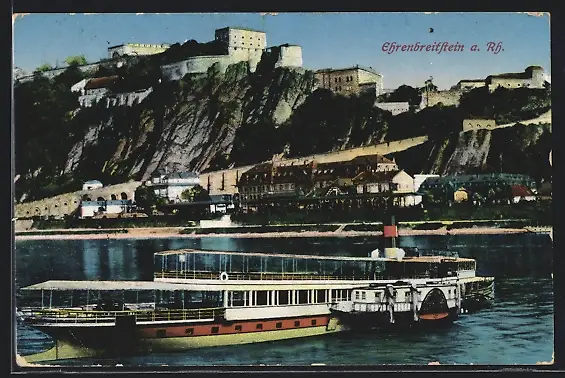 AK Ehrenbreitstein, Dampfer auf Rhein