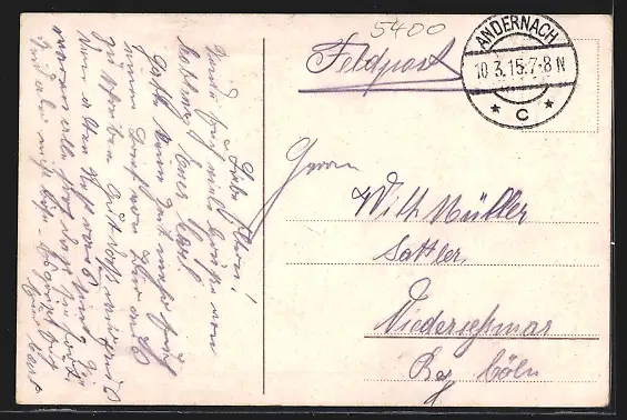 alte Ansichtskarte, gelaufen 1915, Eckknick li. unten, guter Zustand