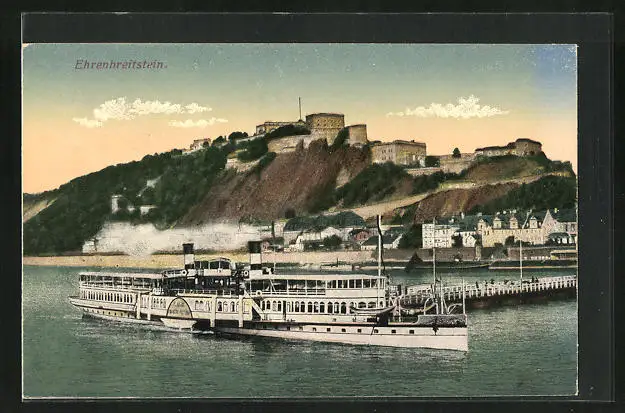 AK Ehrenbreitstein, Ortsansicht mit Dampfer