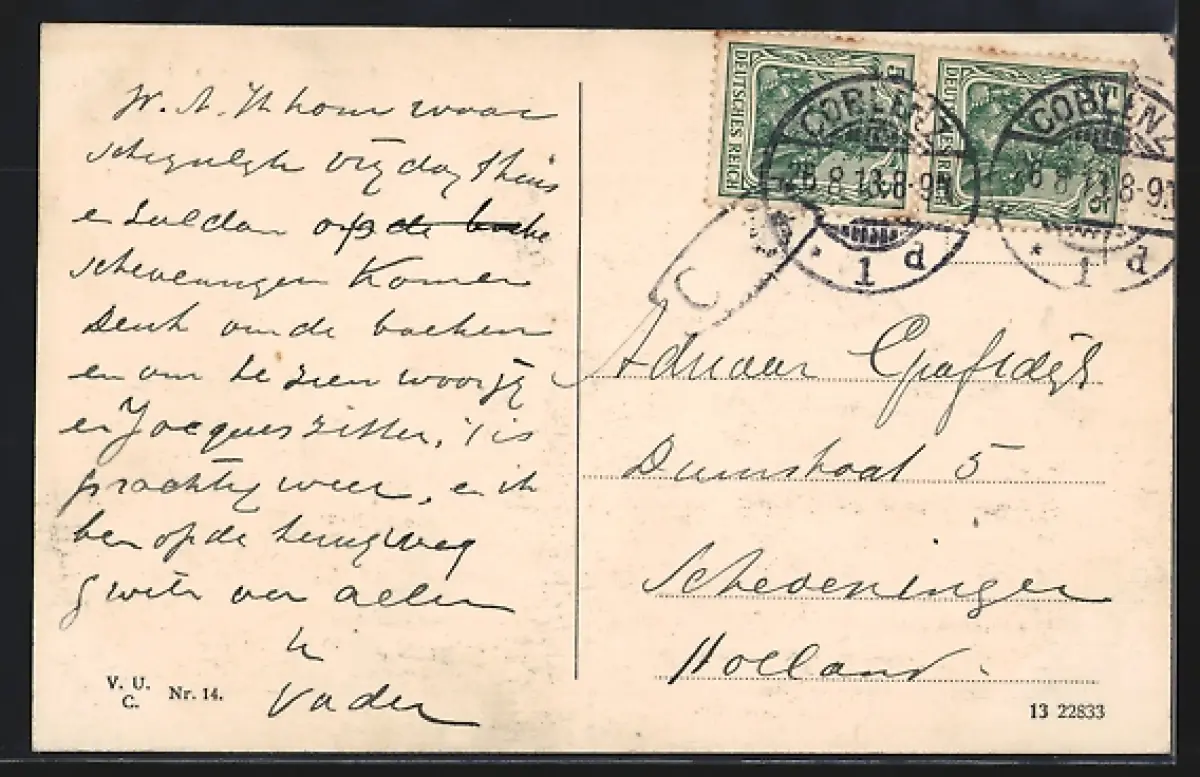alte Ansichtskarte, gelaufen 1913, Stempelspur, guter Zustand