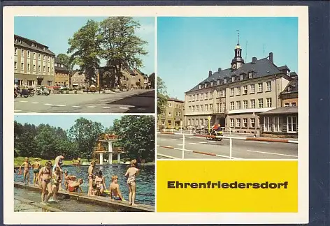 AK Ehrenfriedersdorf ( Kr. Zschopau) 3.Ansichten Markt - Freibad Ehrenfriedersdorf - Rathaus, nicht gelaufen von ca. 1981
