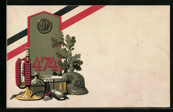 AK Ehrentafel Regiment 474 mit Horn und Pickelhelm