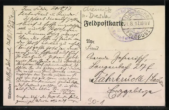 alte Ansichtskarte, gelaufen 1917, guter Zustand