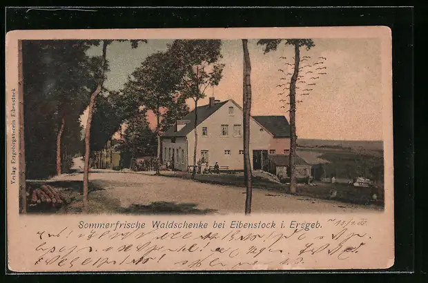 AK Eibenstock i. Erzgeb., Gasthaus Waldschenke im Abendlicht