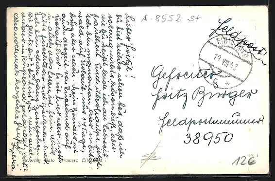 alte Ansichtskarte, gelaufen 1943, Eckknicke li. oben u. re., guter Zustand