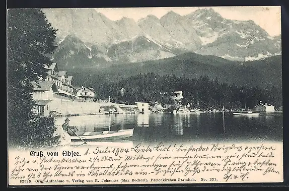 AK Eibsee, Uferpartie mit Bergen