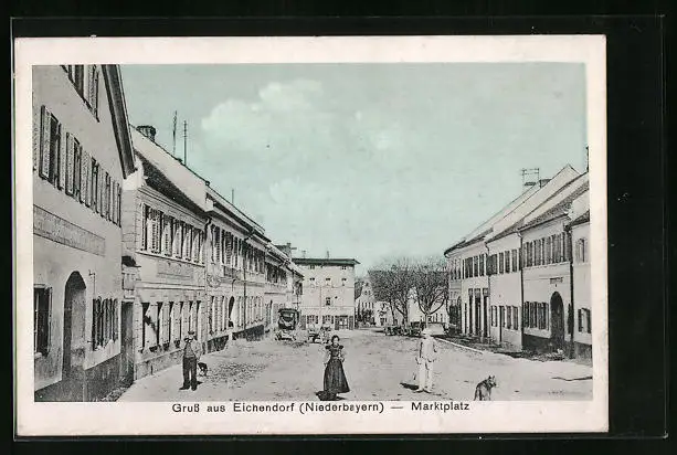 AK Eichendorf /Niederbayern, Marktplatz mit Geschäften