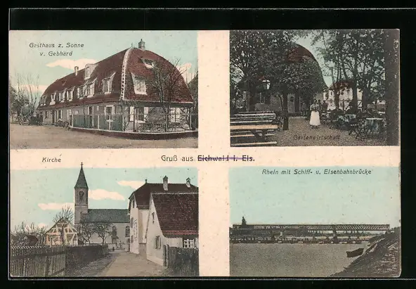 AK Eichwald i. Els., Gasthaus zur Sonne, Kirche