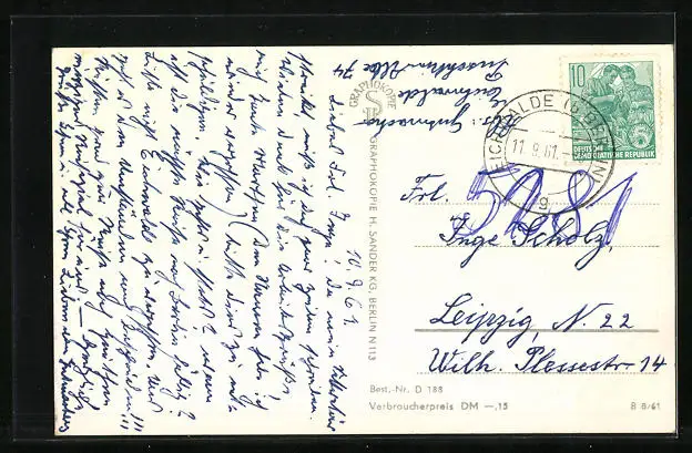 alte Ansichtskarte, gelaufen 1961, Eckknick oben li., guter Zustand