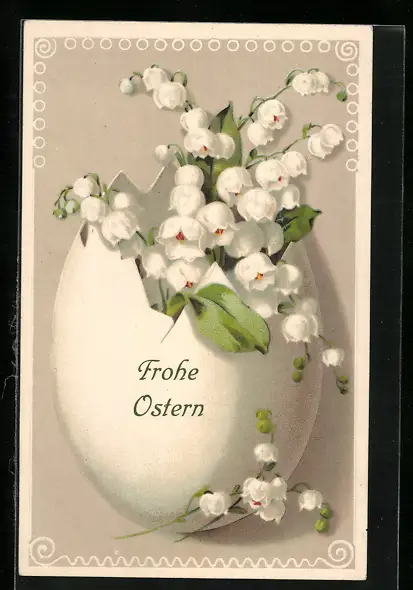 AK Eierschale mit Maiglöckchen