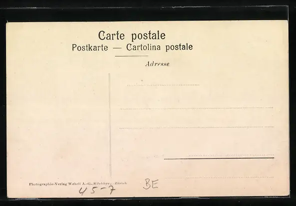 Personenbezogene Daten auf der Rückseite der Karte wurden durch blauen Textmarker unkenntlich gemacht. Die blauen Stellen sind auf die Vorderseite durchgeweicht und wirken sich negativ auf das Postkartenfoto aus