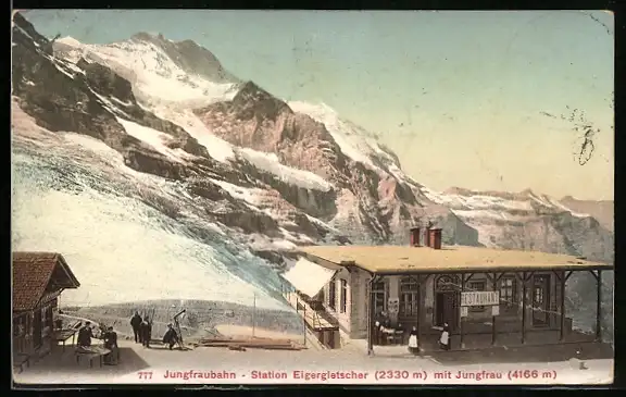 AK Eigergletscher, Station der Jungfraubahn mit Jungfrau