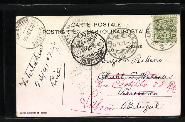 alte Ansichtskarte, gelaufen 1907, Stempelspur, guter Zustand