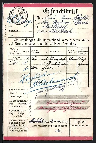 AK Eilfrachtbrief, Scherz-Formular